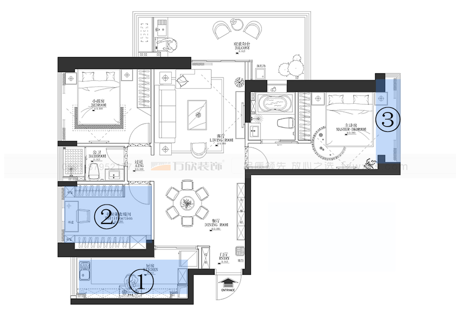 ③ 拆掉飄窗,將主臥陽臺納入室內(nèi),擴(kuò)大了室內(nèi)面積。
