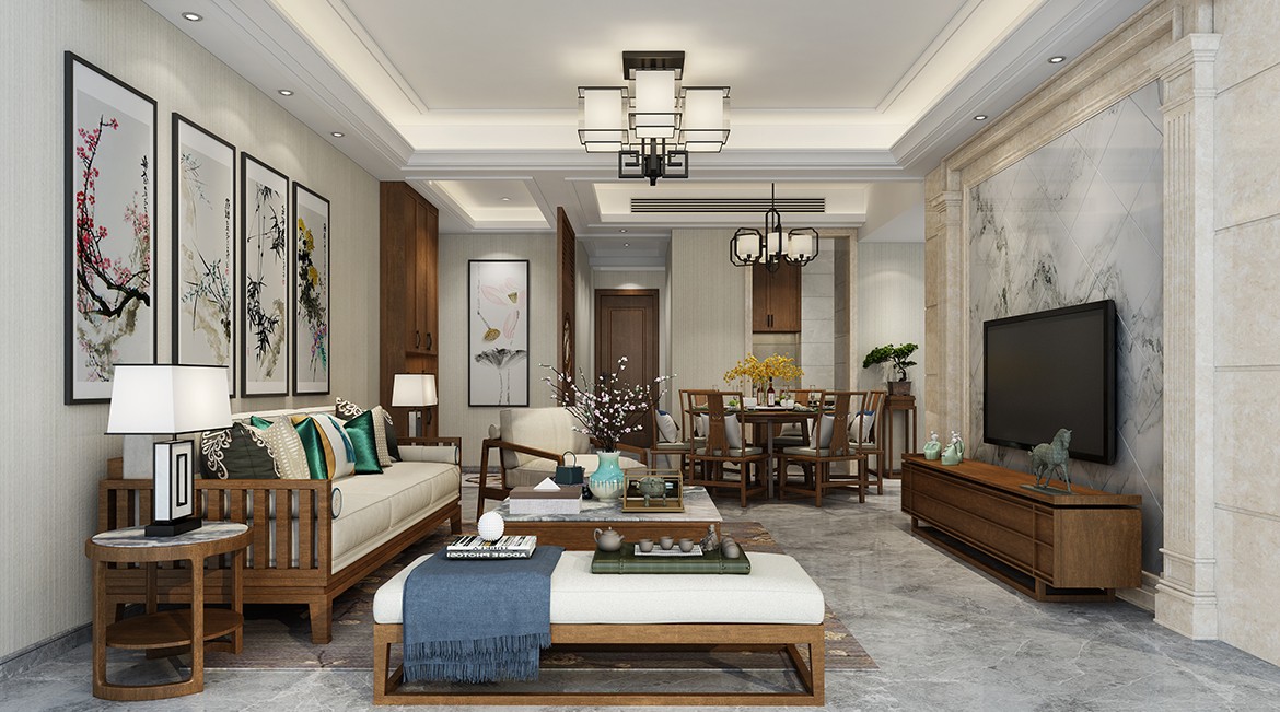 客廳綴以花和竹子元素背景,營造出空靈的寫意,讓人心曠神怡。一抹盎然綠意讓空間瞬間鮮活起來。沙發(fā)木色襯以幽深清冷的墨綠茶托,不經意間帶出一份屬于古代文人的高雅韻味。