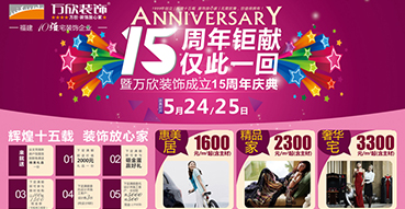 2014年5月25日,大家期待已久的福州萬(wàn)欣裝飾15周年慶典順利圓滿落下帷幕,本次活動(dòng)為期2天(5.24-25),令到場(chǎng)來(lái)賓和廣大支持萬(wàn)欣的朋友們共同見(jiàn)證了本次慶典的火爆及最大的讓利活動(dòng)。現(xiàn)在請(qǐng)跟隨小編的鏡頭一起看看活動(dòng)現(xiàn)場(chǎng)的盛況吧!