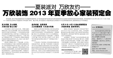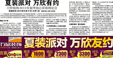 查看詳情時(shí)值盛夏,福州中高端樓盤迎來了交房裝修的高峰期,為了更好的給福州近期交房及將準(zhǔn)備裝修的業(yè)主朋友們提供零距離家裝咨詢服務(wù),萬欣裝飾將于2013年8月31日-9月1日在八一七路公司總部舉辦“夏裝派對(duì) 萬欣友約”活動(dòng)。截止目前,本次夏季放心家裝預(yù)定會(huì)已經(jīng)有數(shù)十戶業(yè)主預(yù)約報(bào)名參加,有需要的業(yè)主千萬別錯(cuò)過!