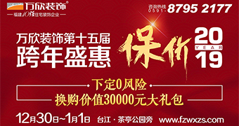 查看詳情萬(wàn)欣裝飾第十五屆跨年盛惠 下定0風(fēng)險(xiǎn) 保價(jià)2019 裝修好房,首選金牌工程監(jiān)理