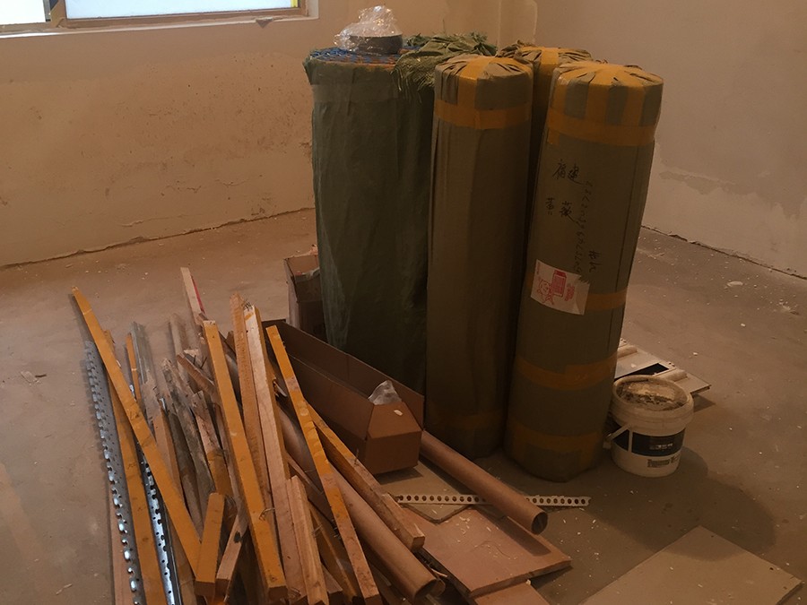 飾面磚剛鋪貼完畢,現(xiàn)場干凈整潔,堆放有序,標識清晰