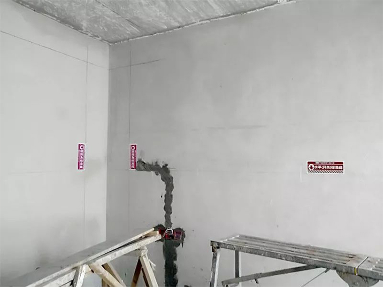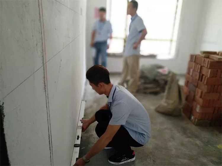 ▲檢查新砌墻體墻面平整度