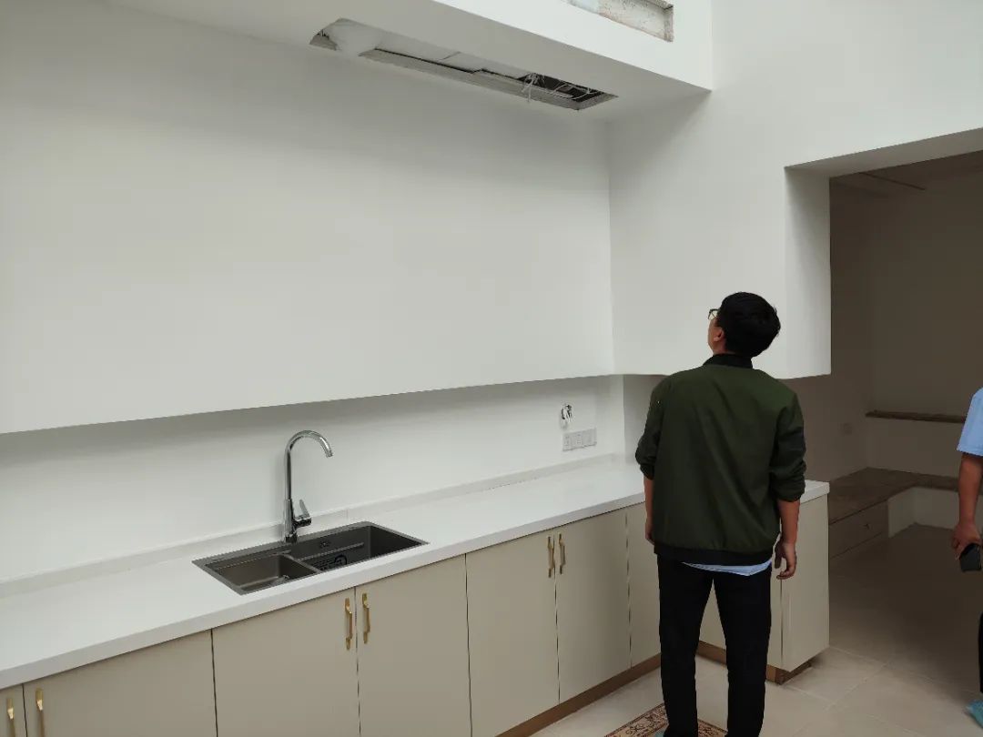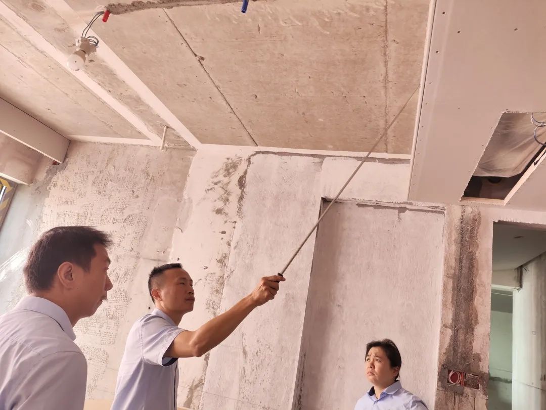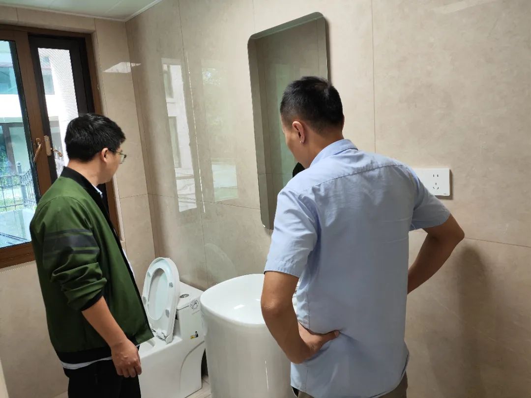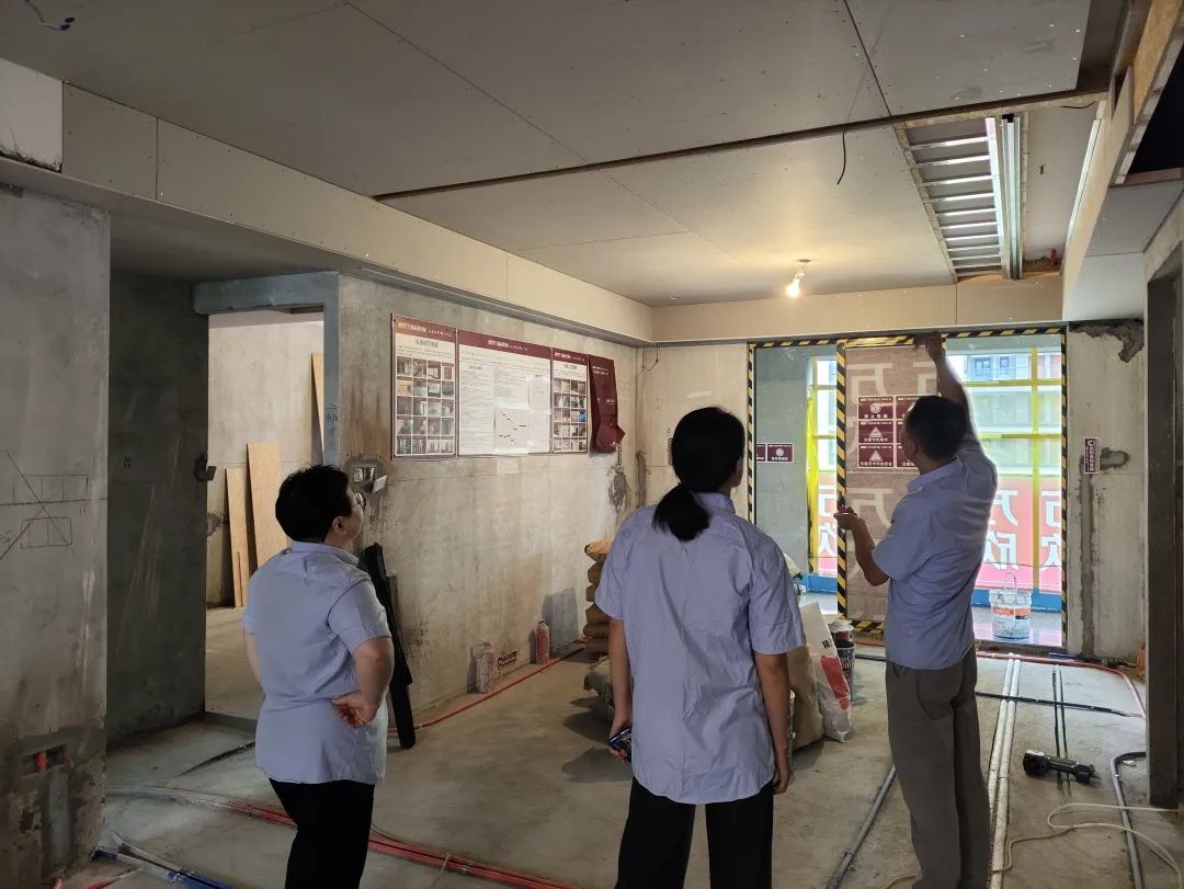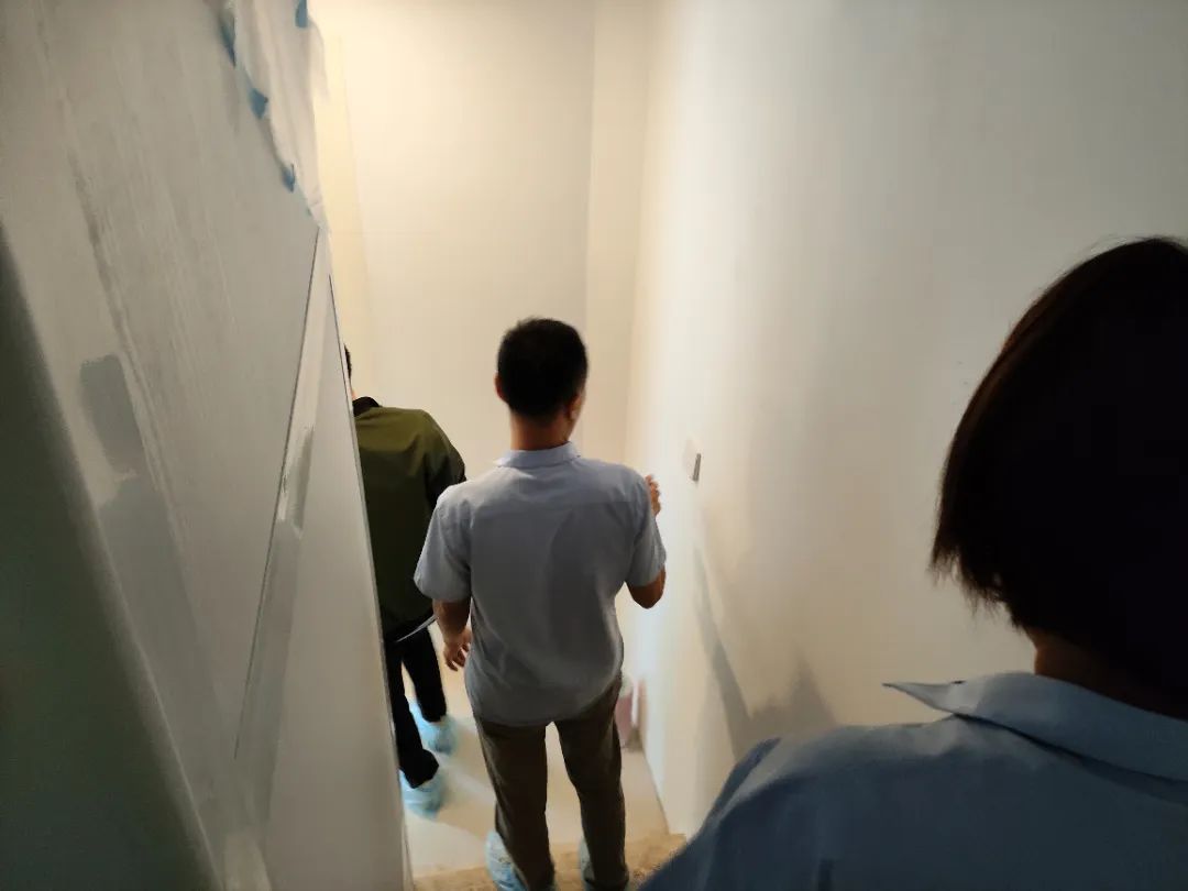 △現(xiàn)場對油漆、柜子、衛(wèi)浴等已安裝設(shè)備進行仔細檢查,確保業(yè)主入住后的正常使用。