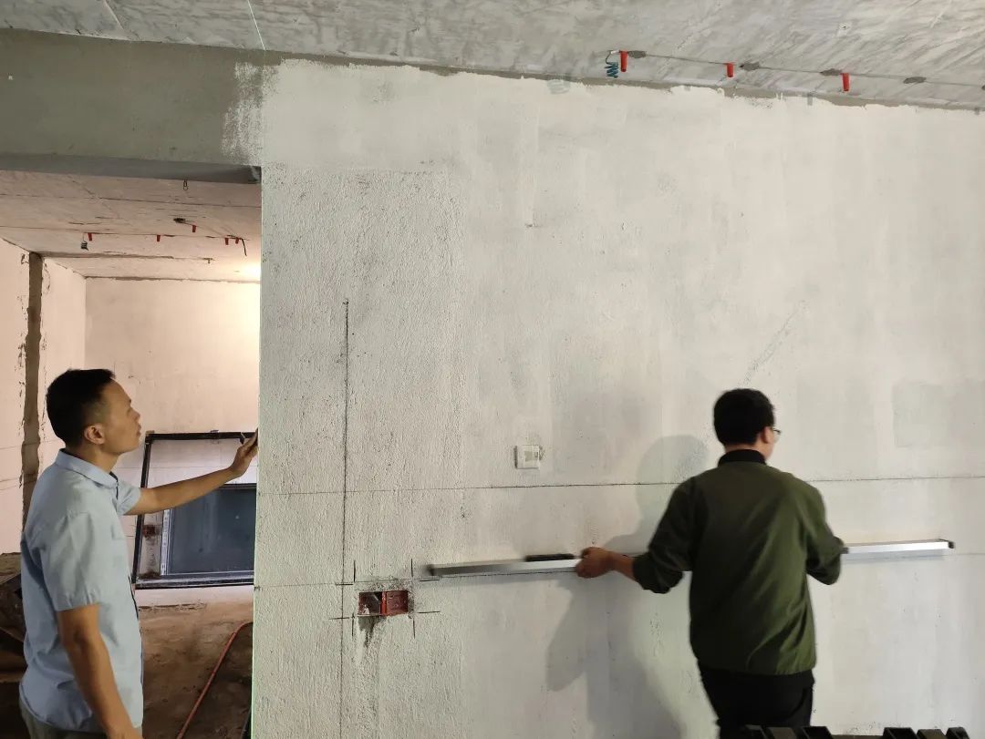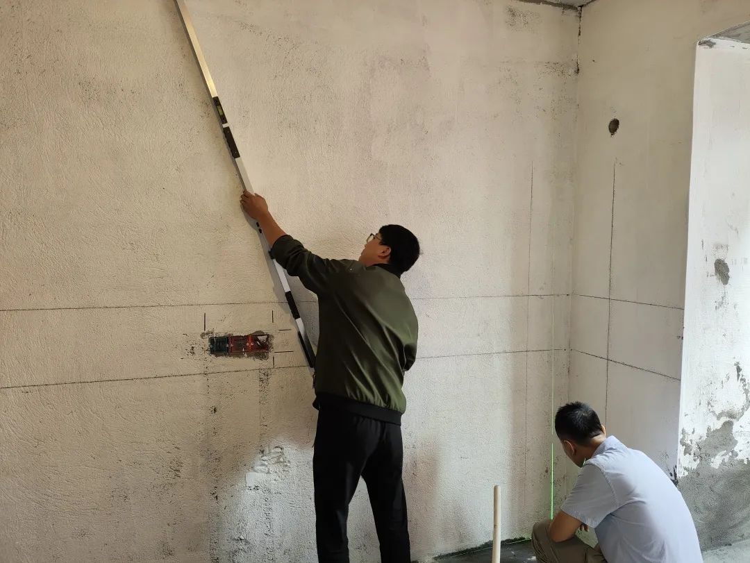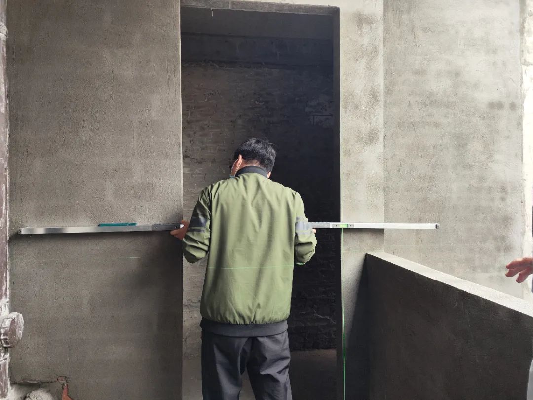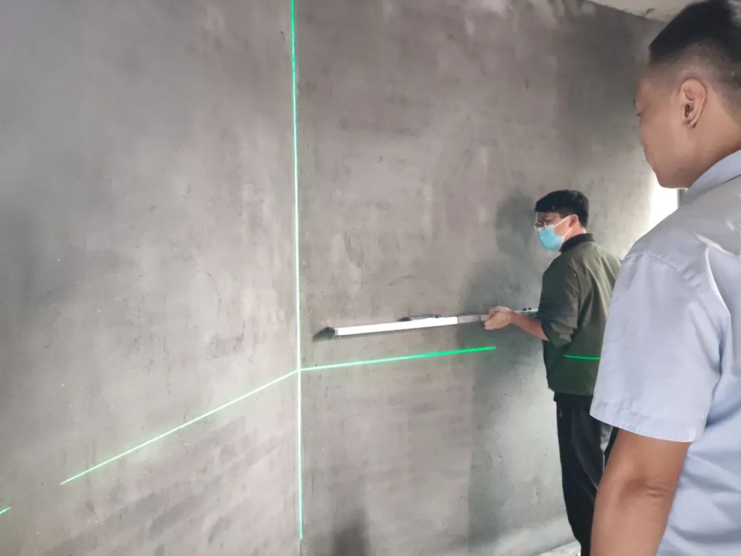 △用兩米靠尺和激光水平儀測量新砌墻的平整度和垂直度,新砌墻體平整,提高后續(xù)墻體粉刷及油漆工藝墻面平整度,為后續(xù)工藝的施工打好基礎(chǔ)。