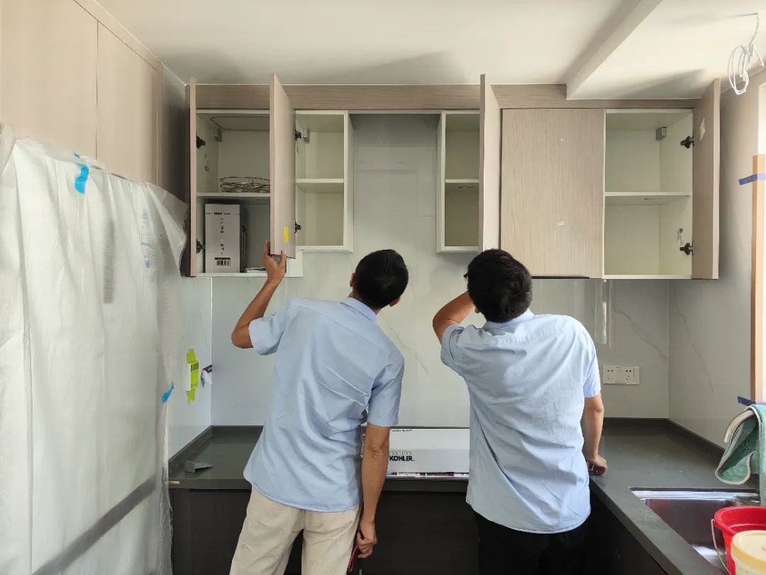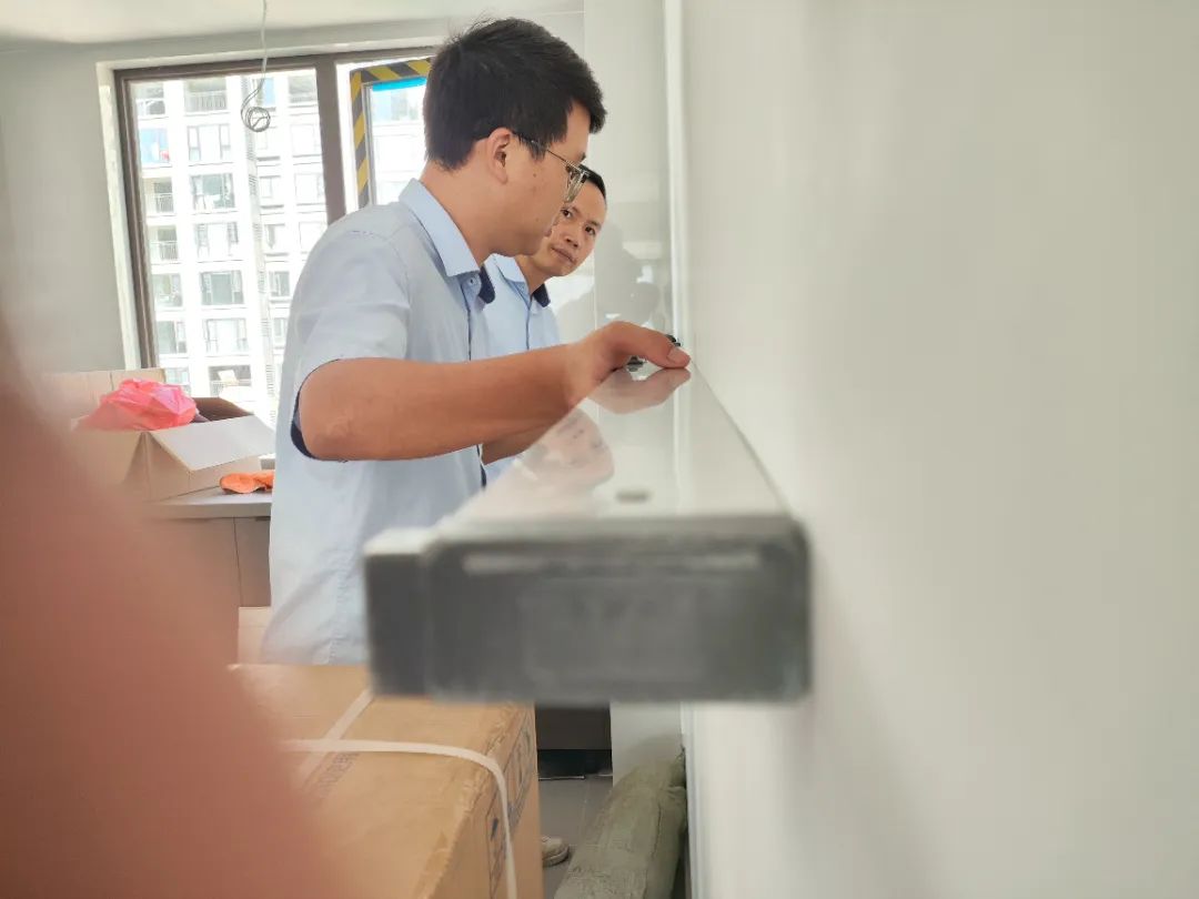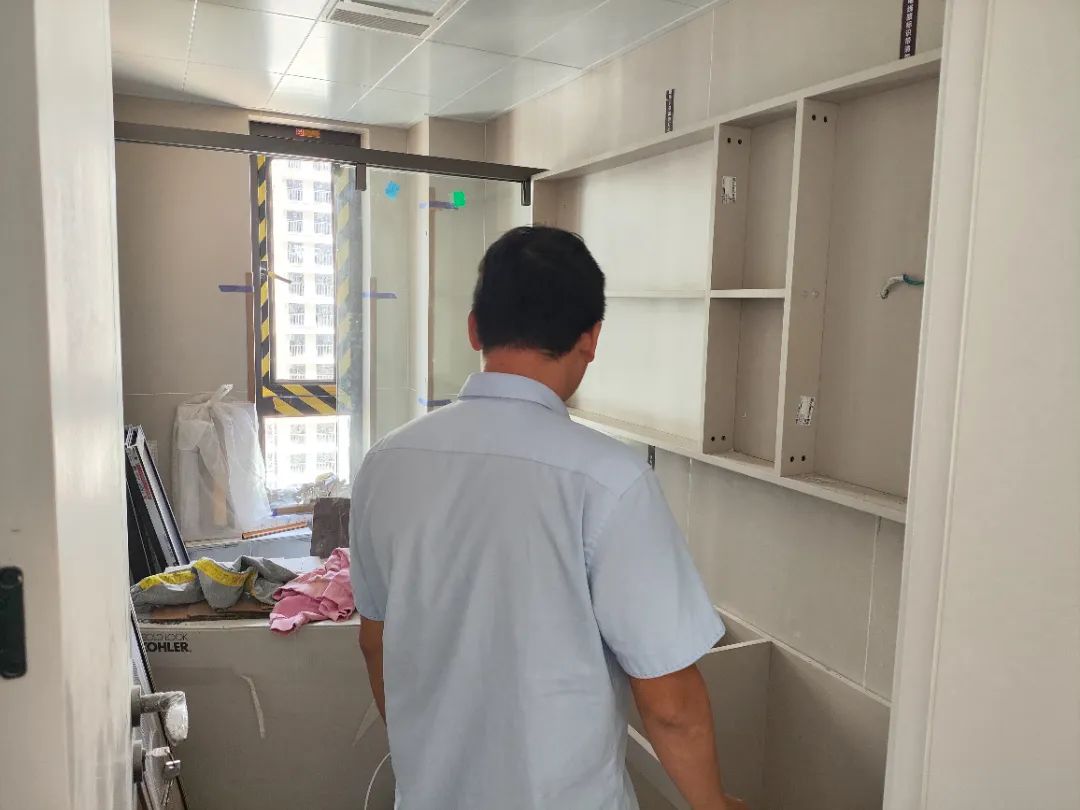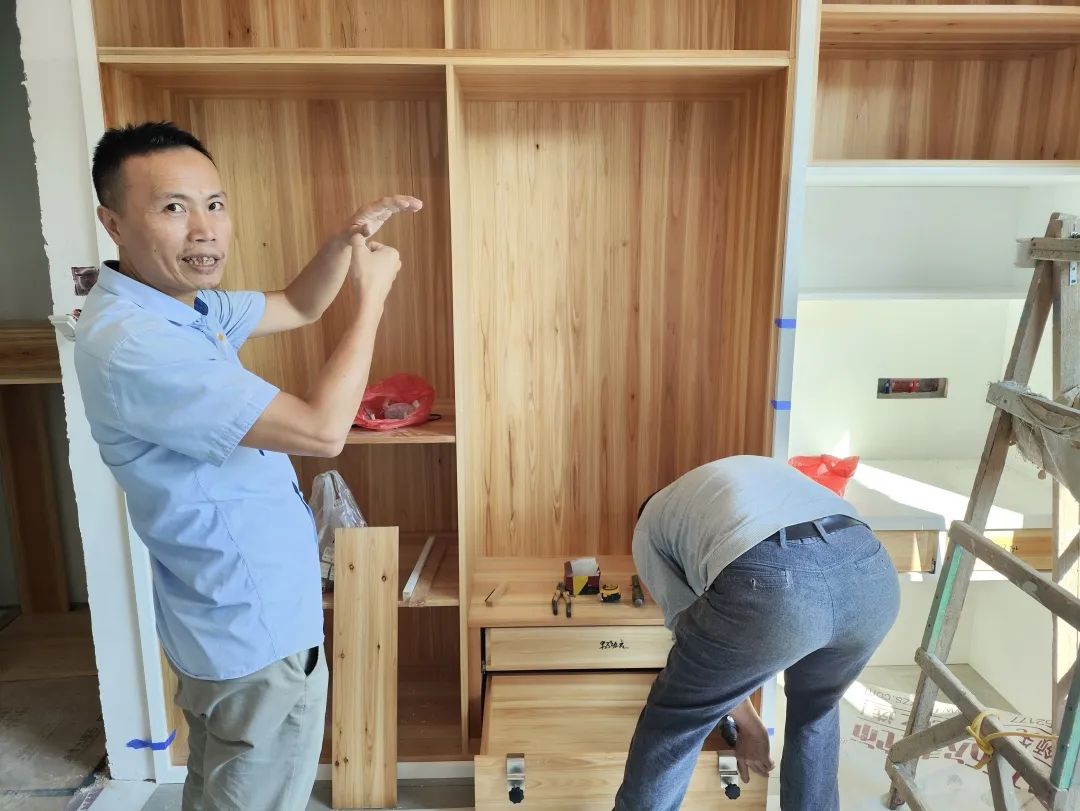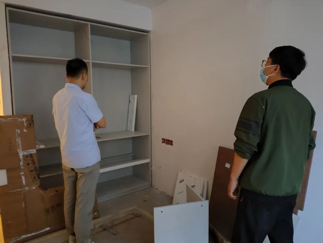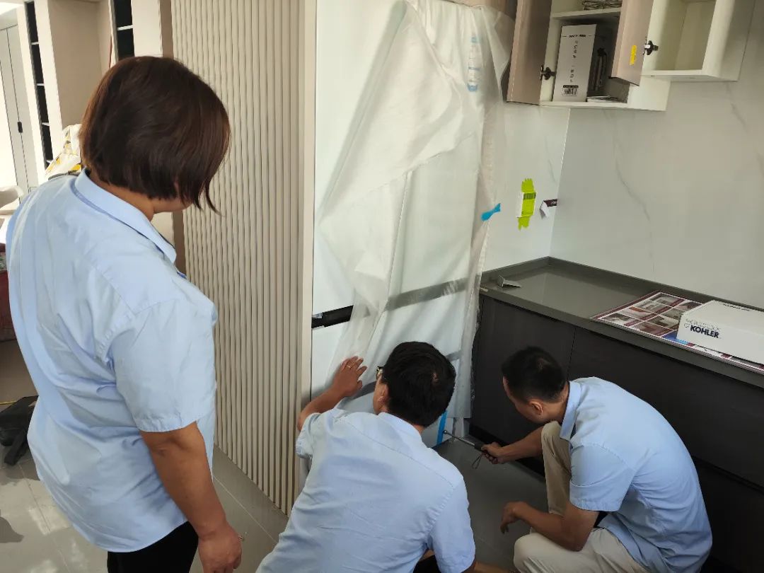 △現(xiàn)場對柜子進行仔細檢查,確保業(yè)主入住后的正常使用。