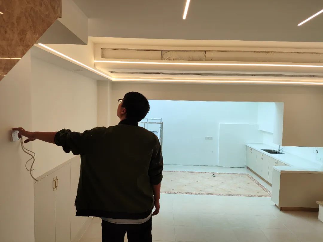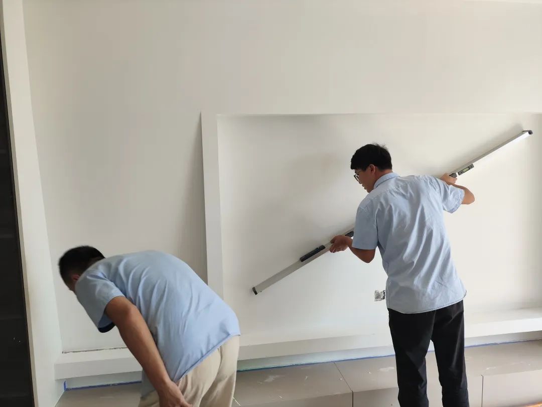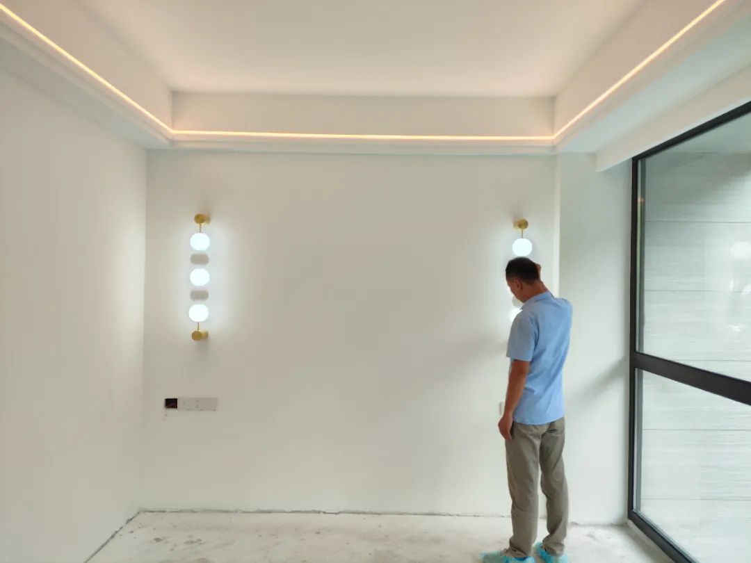 △檢查墻面平整度,在燈光照射下是否會有波浪紋影響整體美觀。