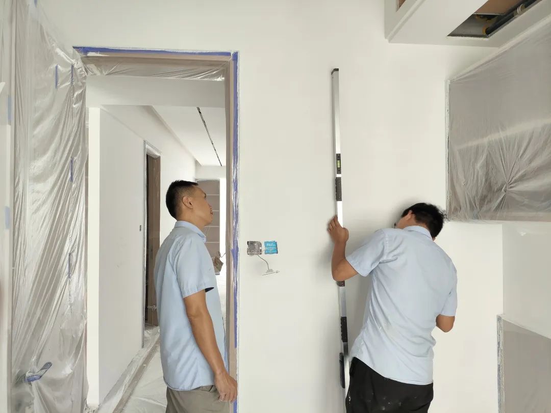 △轉(zhuǎn)角垂直的檢查也是檢驗中的一個關(guān)鍵點之一。此時我們會重點檢查陰陽角,因為這關(guān)系到后期的家居擺放、衣柜、浴柜、櫥柜安裝等。若轉(zhuǎn)角不垂直,不僅會影響視覺體驗,還會影響結(jié)構(gòu)的穩(wěn)定性。